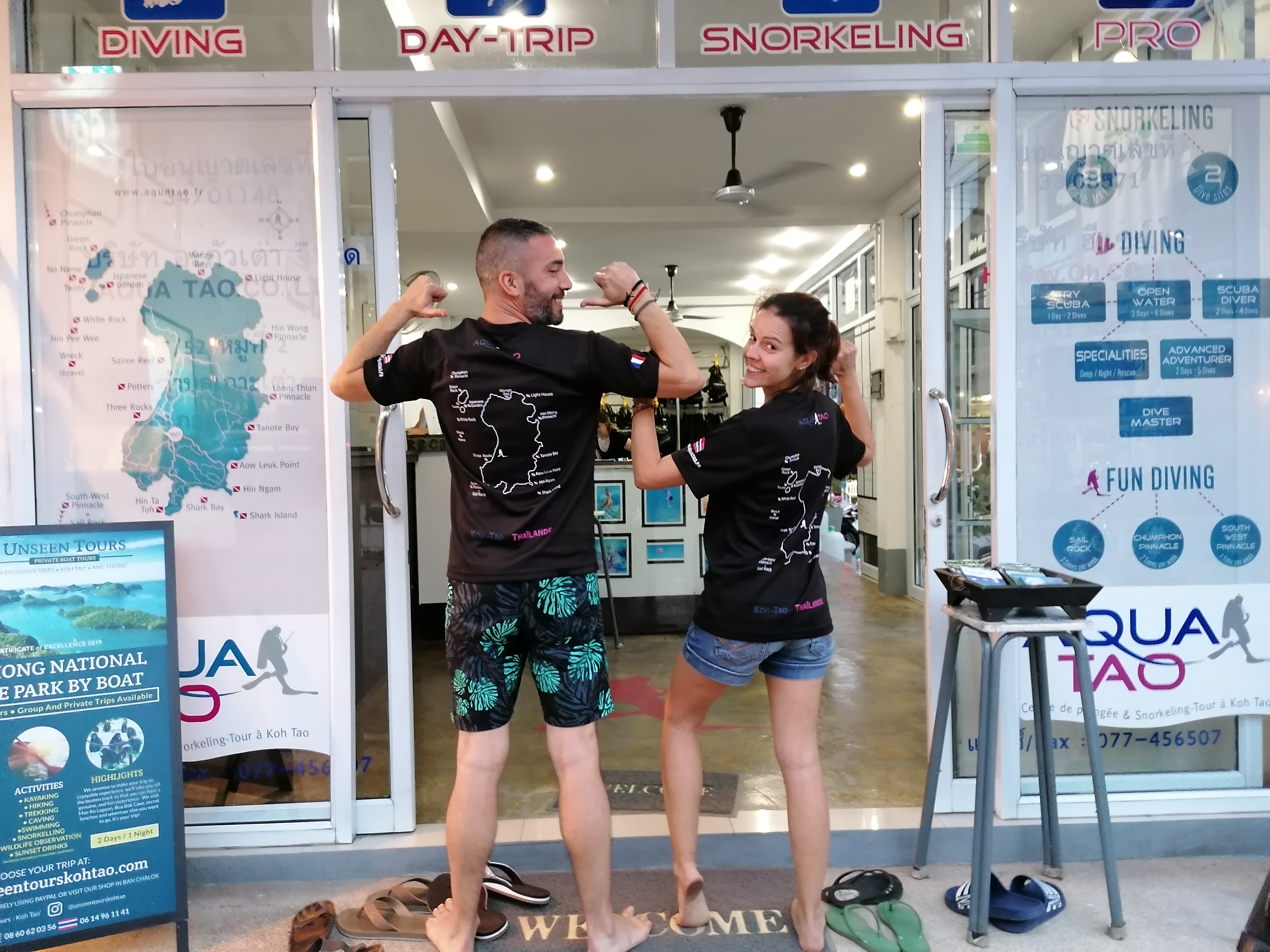 En arrivant à Koh Tao, nous voulions passer notre diplôme de plongée. Nous avons choisi le club, Aqua Tao que je vous recommande fortement. Il s’agit d’un club francophone à taille humaine et très familial.