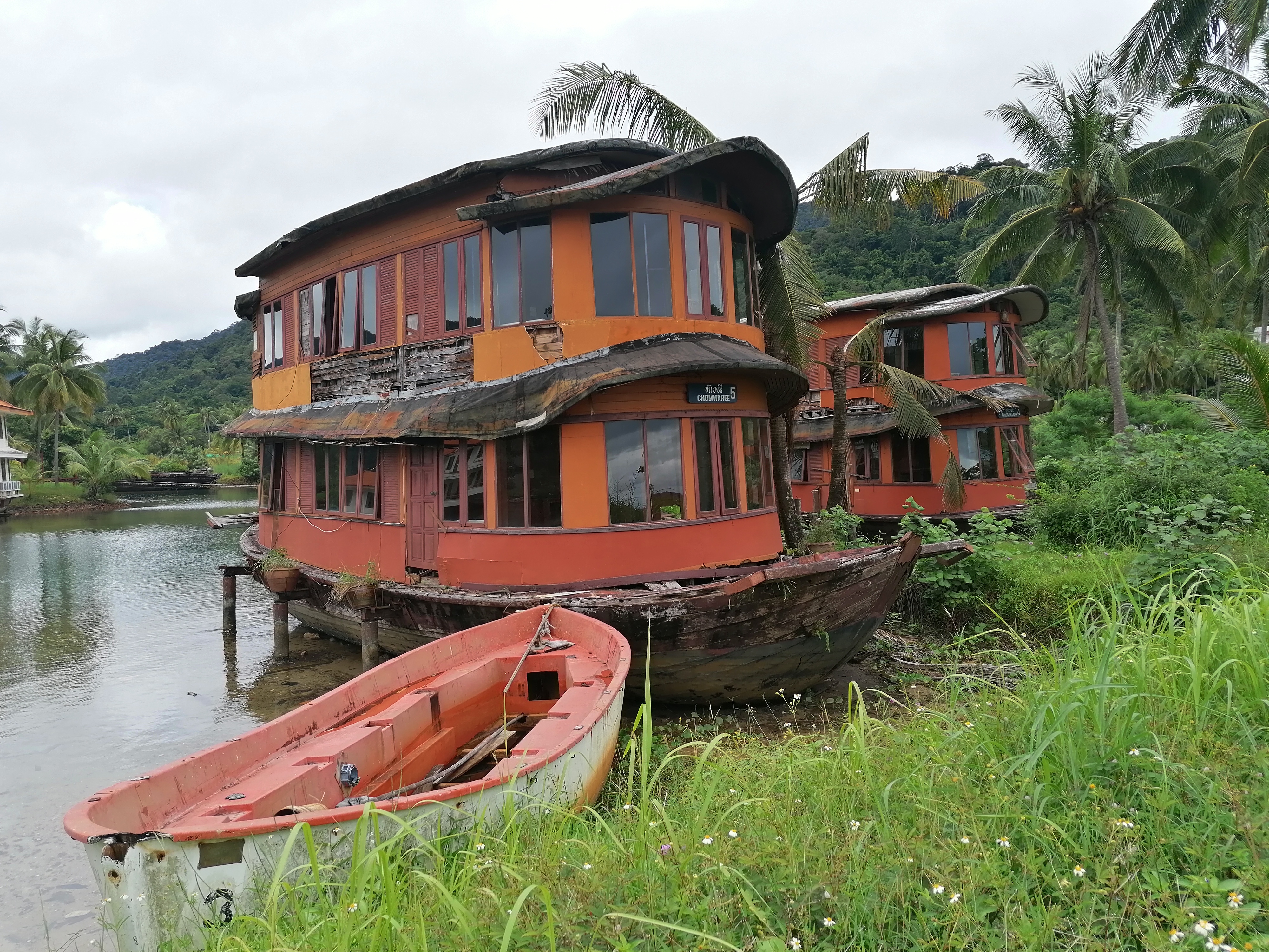 Nous sommes déjà sous le charme de Koh Chang, ou littéralement l’île Eléphant. Nous passons deux semaines sur la troisième plus grande île du pays à admirer la nature à perte de vue, l’immensité de la jungle et ce, avec nos plus belles capes de pluie. En effet, en saison des pluies l’humidité et les averses sont très fréquentes. Cela ne nous empêche pas d’en profiter et d’aller à la rencontrer des habitants, des villages, des cascades et des plages en vadrouillant sur la seule route de l’île !