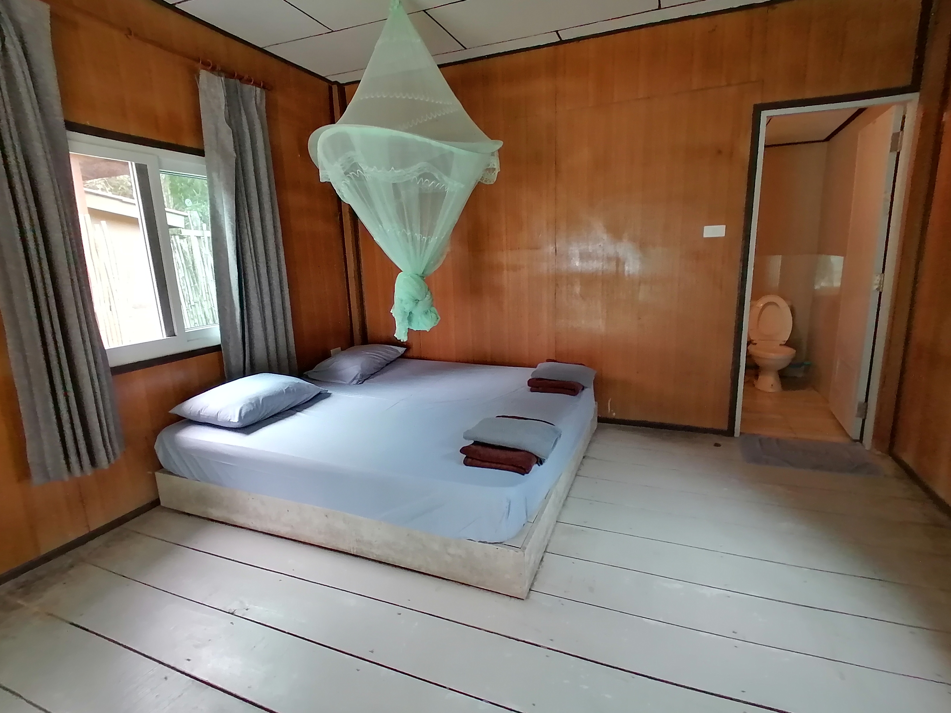 La localisation est parfaite car notre bungalow est face à la mer les pieds dans le sable. Cependant et malgré le prix préférentiel dont on a profité, je trouve que cela reste cher pour les prestations (par rapport à tout ce qu’on a pu tester avant). Un bungalow avec un lit, sans chaise ni table pour poser ses affaires, ni penderie évidemment. Il n’y a pas de ménage de fait et les planches en bois qui servent de plancher sont si écartées qu’on voit le sable. Bref, le tarif est basé uniquement sur la localisation.