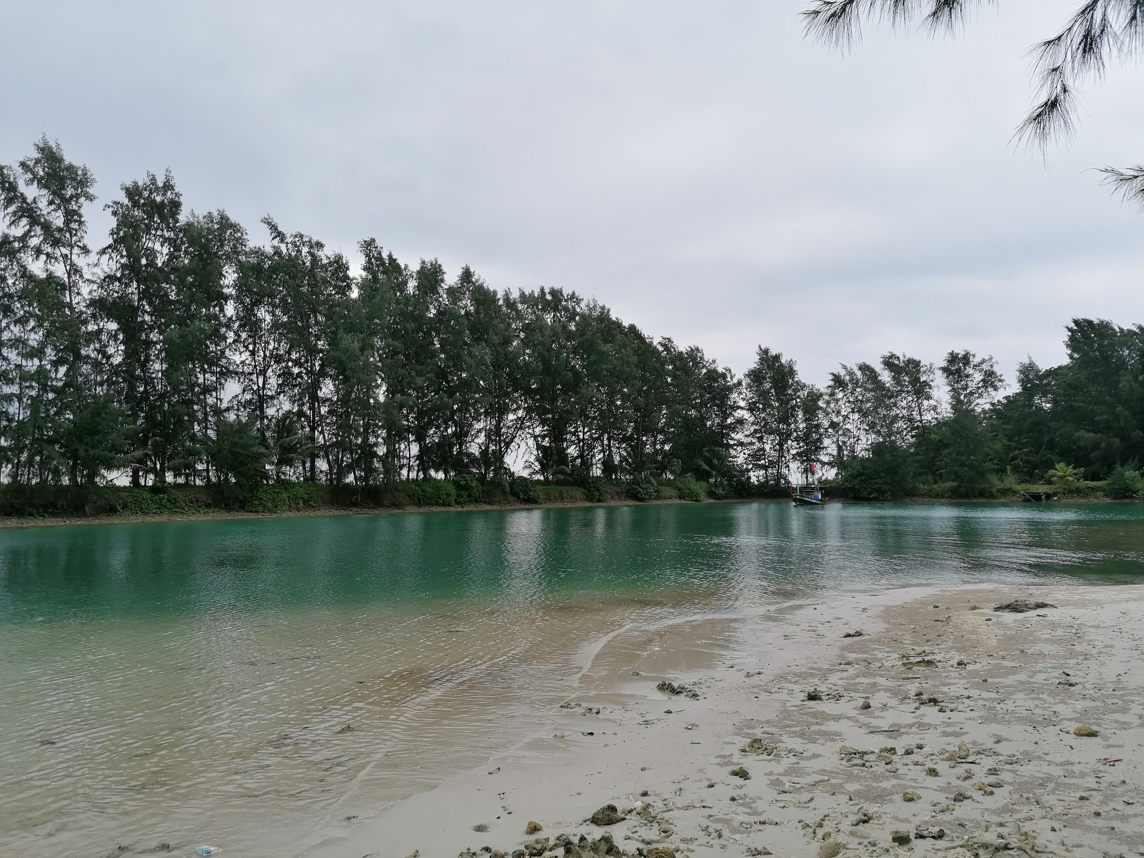 La plage en question est difficilement accessible. La route abîmée se termine par de la boue en cette période. Il nous faut alors traverser deux rivières avant de savourer notre moment détente avec une famille thaïlandaise rencontrée sur place.
