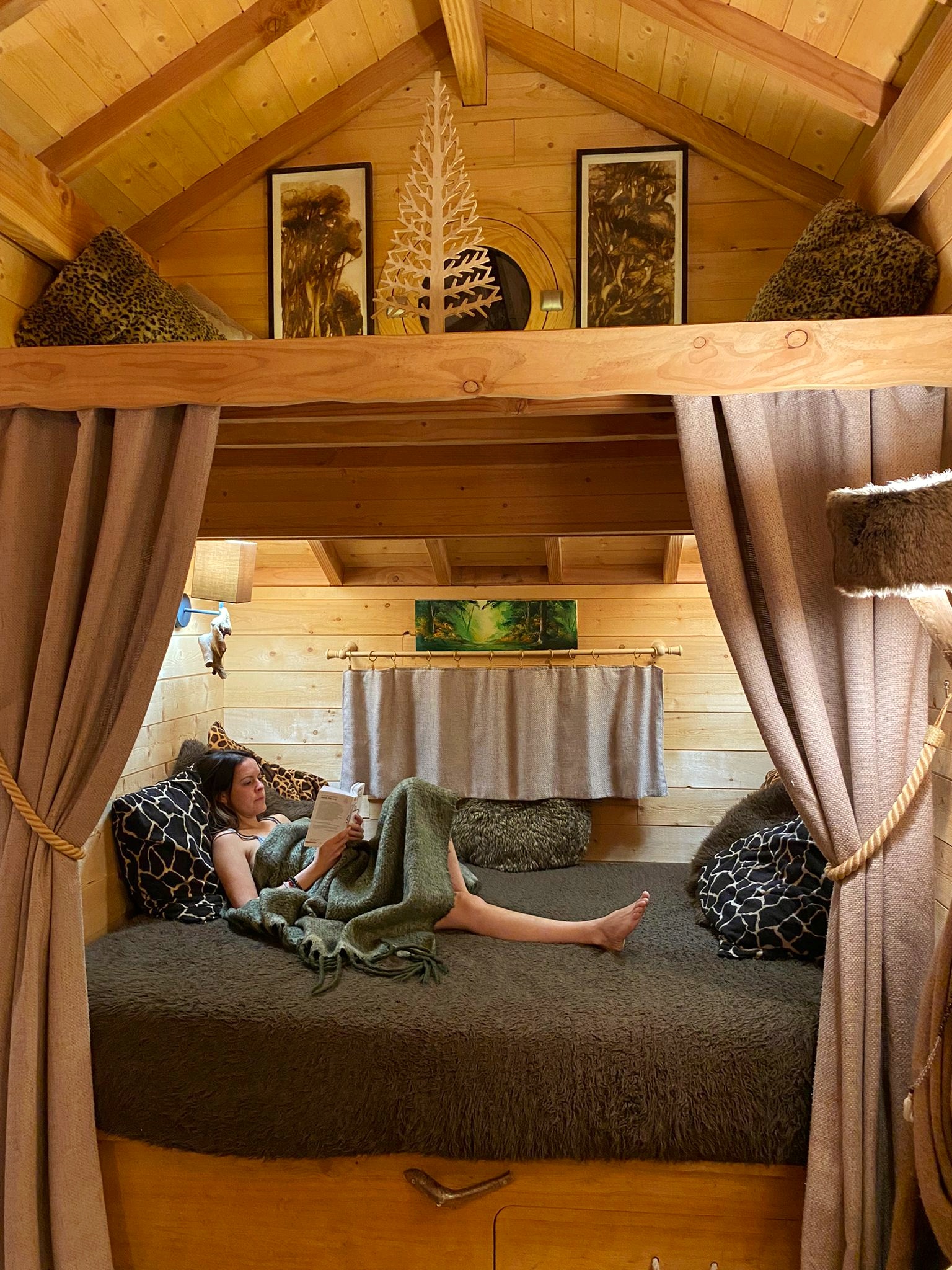 Les équipements à l’intérieur : cuisine entièrement équipée pour cuisiner et avec les condiments minimums, toilettes sèches, le nécessaire pour se laver (savon, shampoing, serviettes…) et bien-sûr la literie est fournie et les lits sont faits. Chaque cabane dispose également de jeux de société et de jeux extérieurs.
