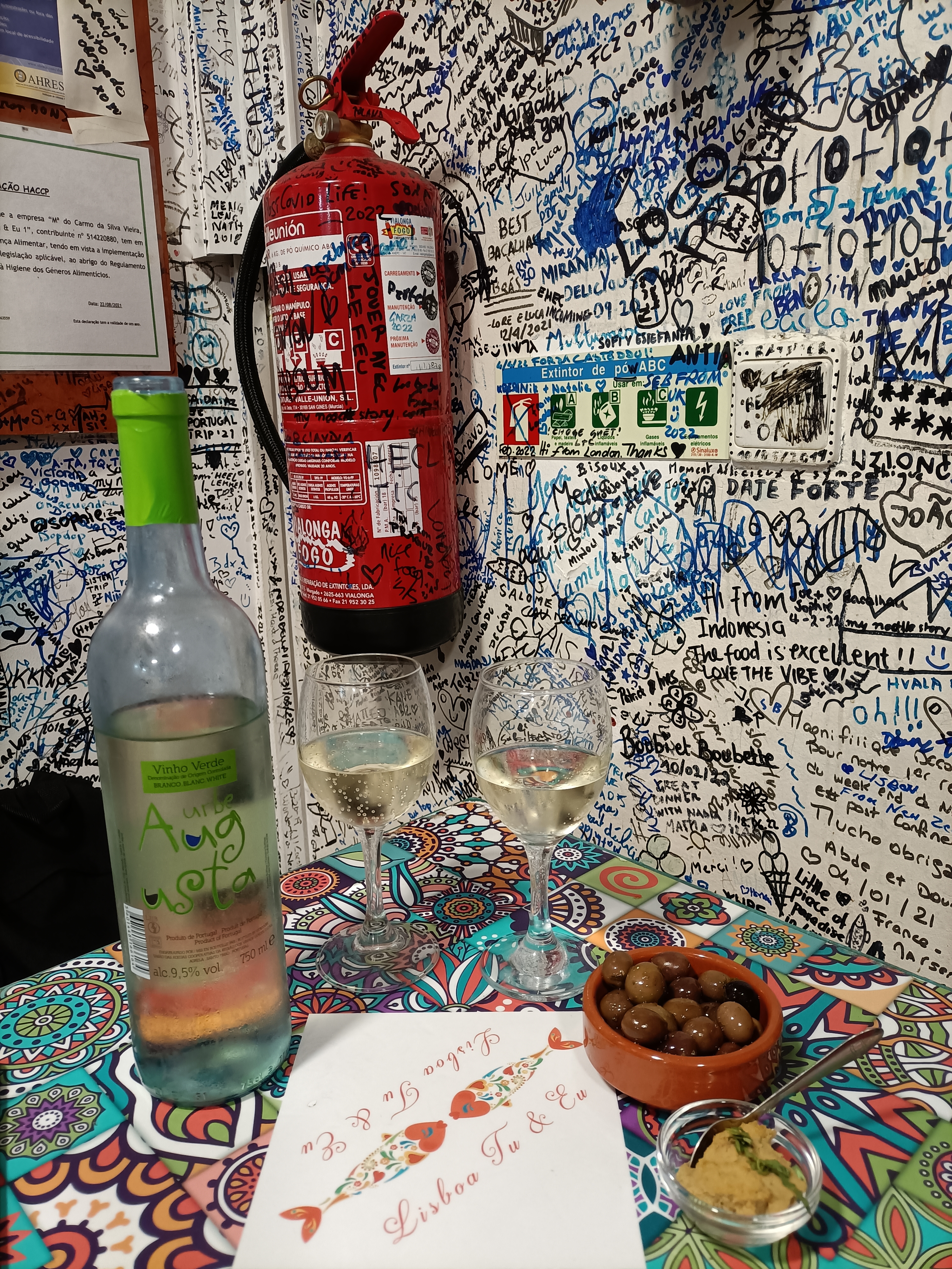 Pour dîner dans un restaurant atypique ne loupez pas Lisboa Tu & Eu avec ses murs recouverts des petits mots de tous les clients venus ici ! Une excellente adresse à petits prix avec une gérante adorable qui parle le français si besoin.