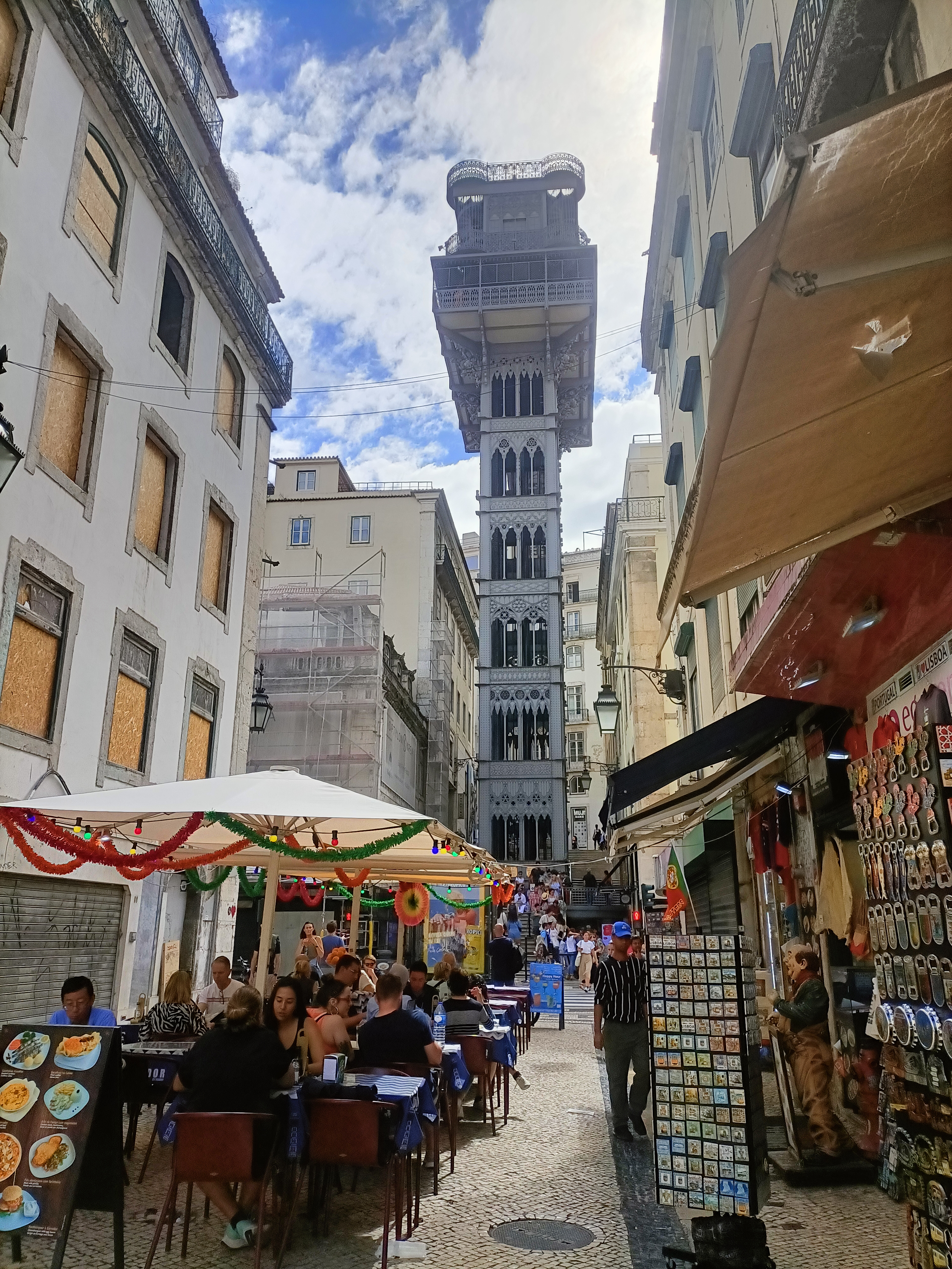 Baladez vous ensuite dans les ruelles en direction de l’ascenseur de Santa Justa, monument historique qui mérite d’être vu ! Néanmoins, je vous déconseille de monter à l’intérieur car si la vue à l’air incroyable on ne voit finalement pas grand chose à cause de la vitesse et de la saleté des vitres. D’autant que le temps d’attente est long et que sans l’appoint sur le tarif le monsieur de l’accueil garde la différence…. Enfin, quasiment tout est accessible à pieds alors ne perdez pas votre temps dans la file d’attente et grimpez 🙂