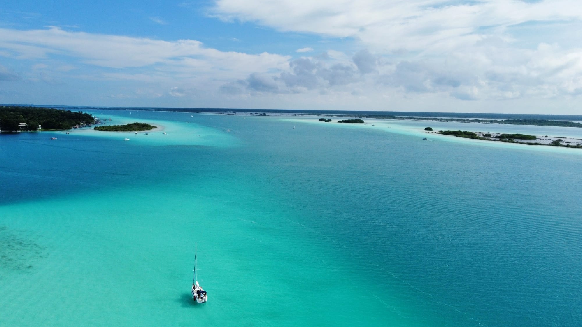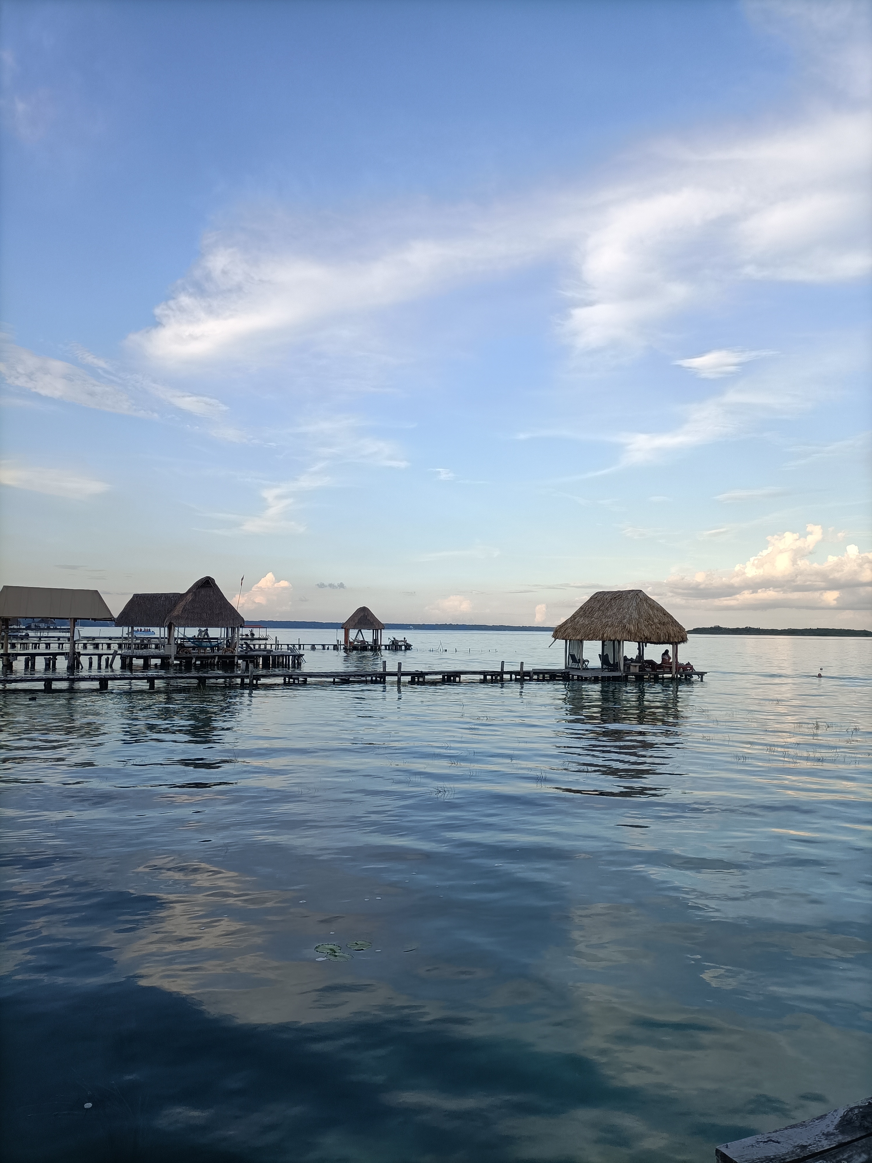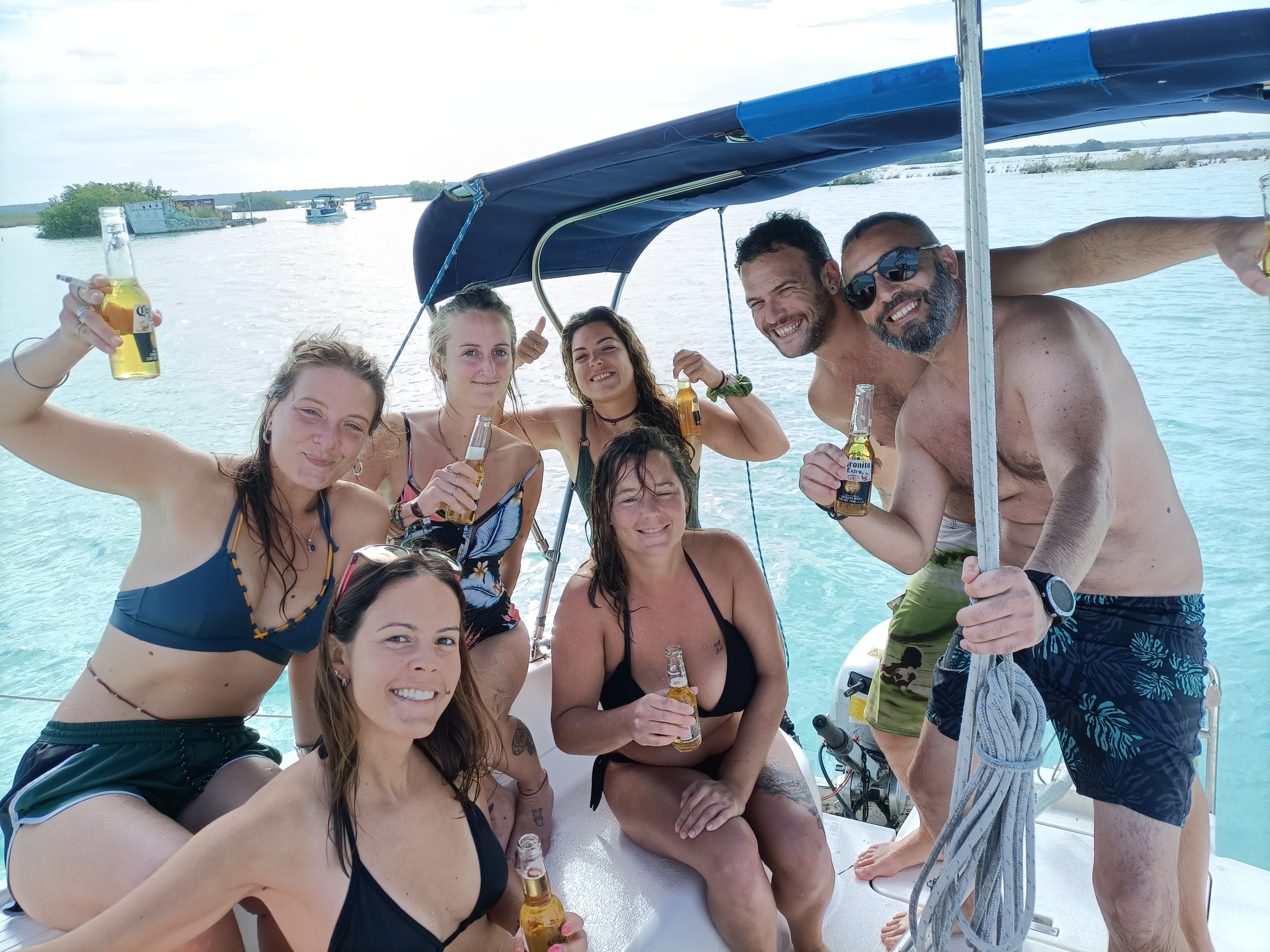 Bacalar c’est une lagune aux sept couleurs, un lieu sublime, autant parfait pour se reposer qu’à découvrir en voilier. Nous avons fait la connaissance de français avec lesquels nous partageons alors un bateau de 8h à 11h. Le petit tour matinal est idéal car il permet d’être plus tranquille et d’avoir du beau temps. En effet, il pleuvait tous les après-midi.