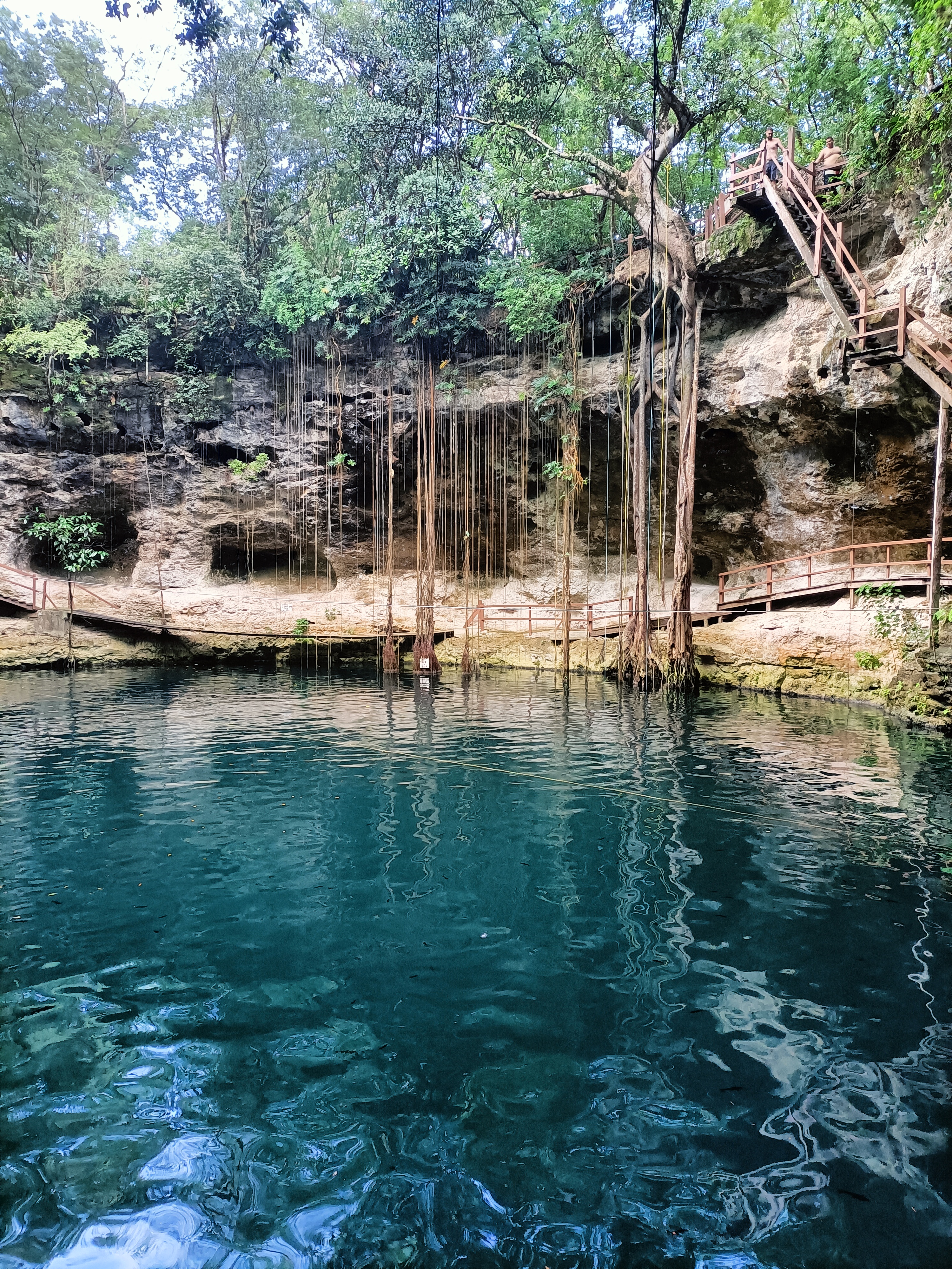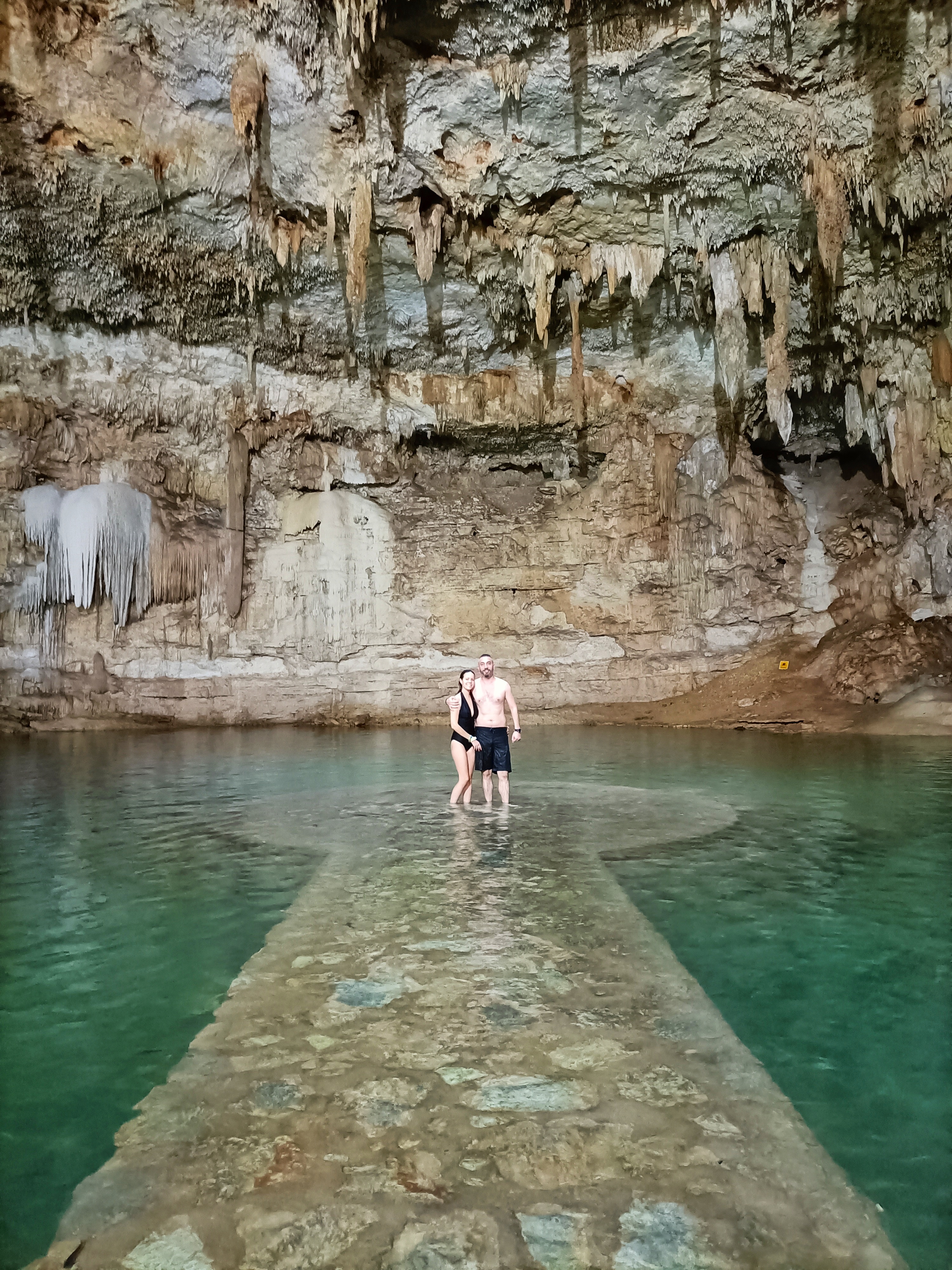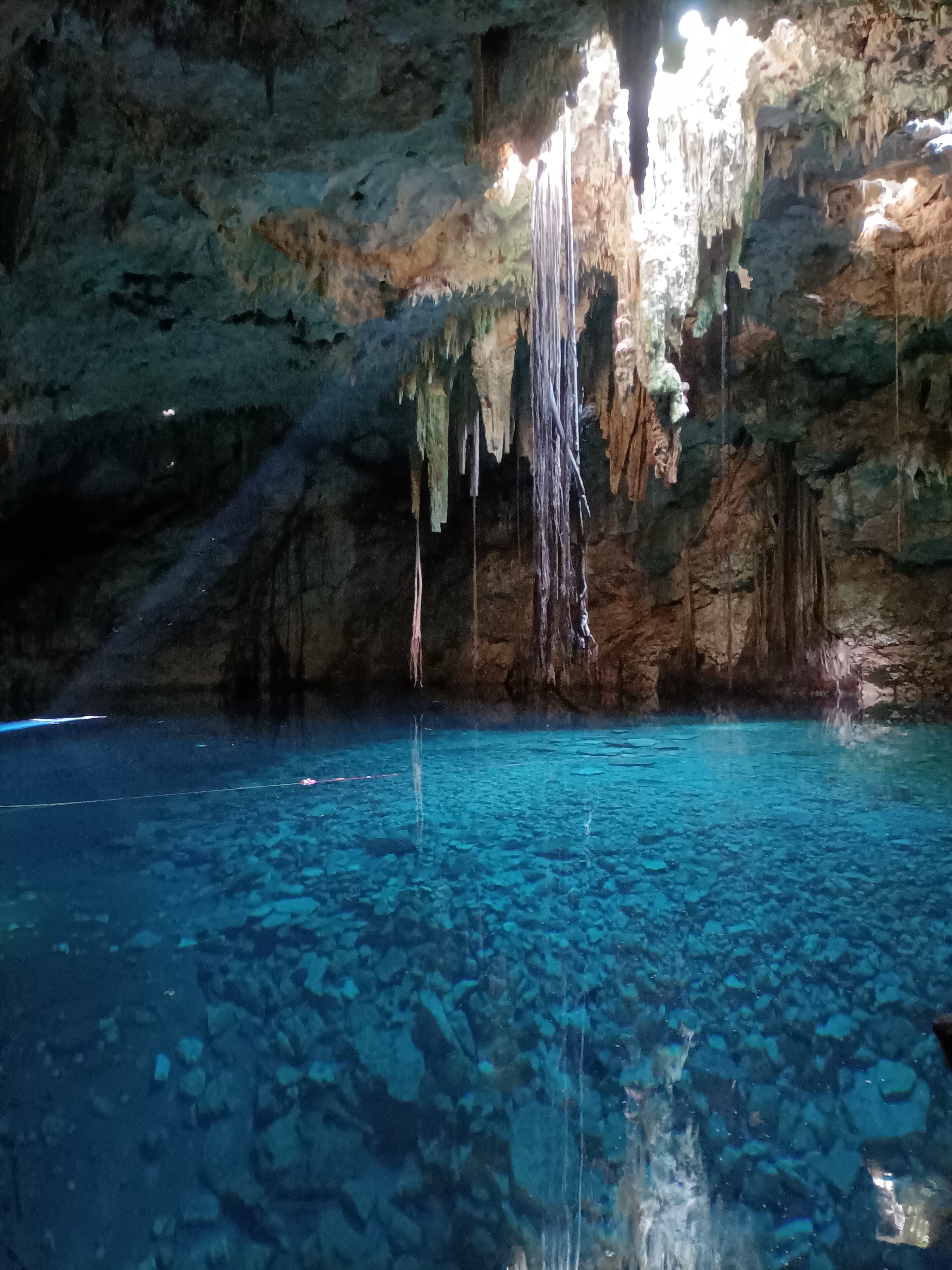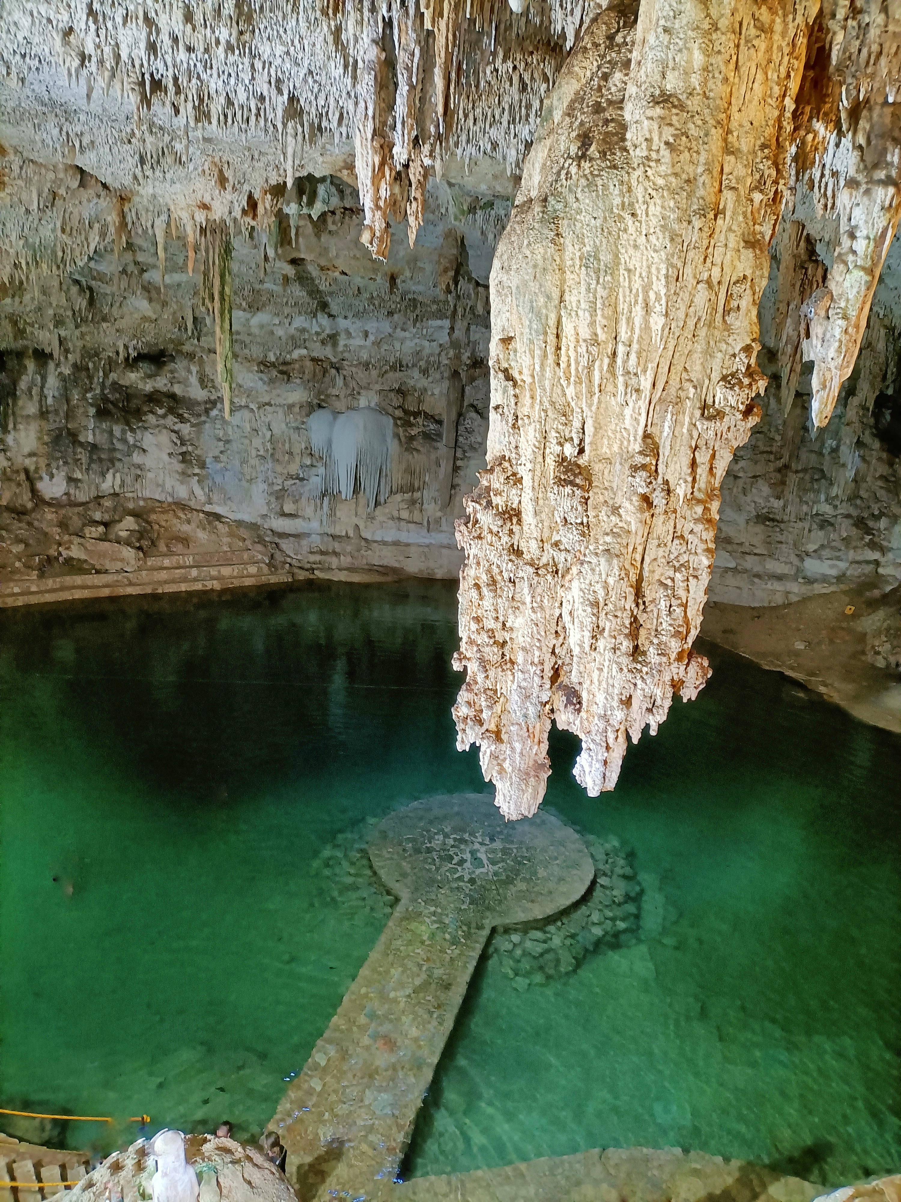 Suytun Cenote (entrée à 200$M) : c’est vraiment un endroit magnifique, il y a des stalactites, des stalagmites et elles sont observables depuis la plateforme au milieu de la cenote.