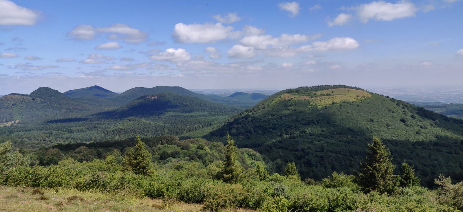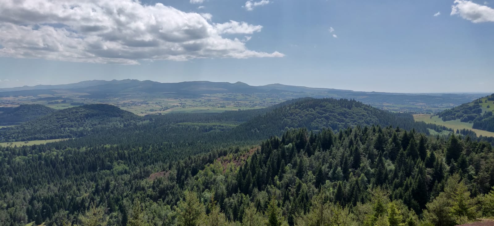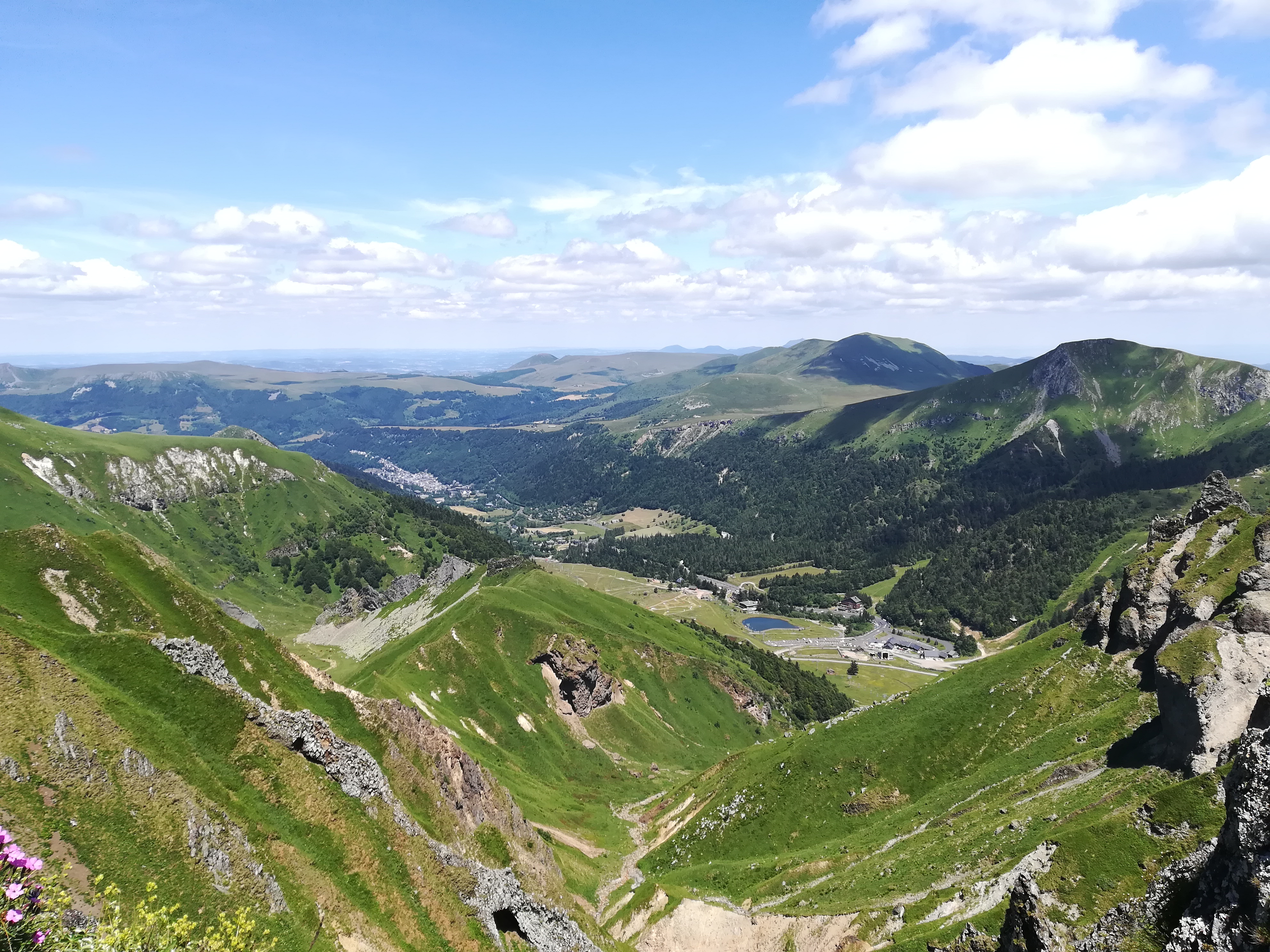 Une fois en haut, vous aurez vue sur un panorama magnifique, à 360°. On peut admirer les vallées glaciaires et les crêtes acérées ainsi que les massifs volcaniques du Cantal, de la Chaîne des Puys, du Mézenc et même le Forez.