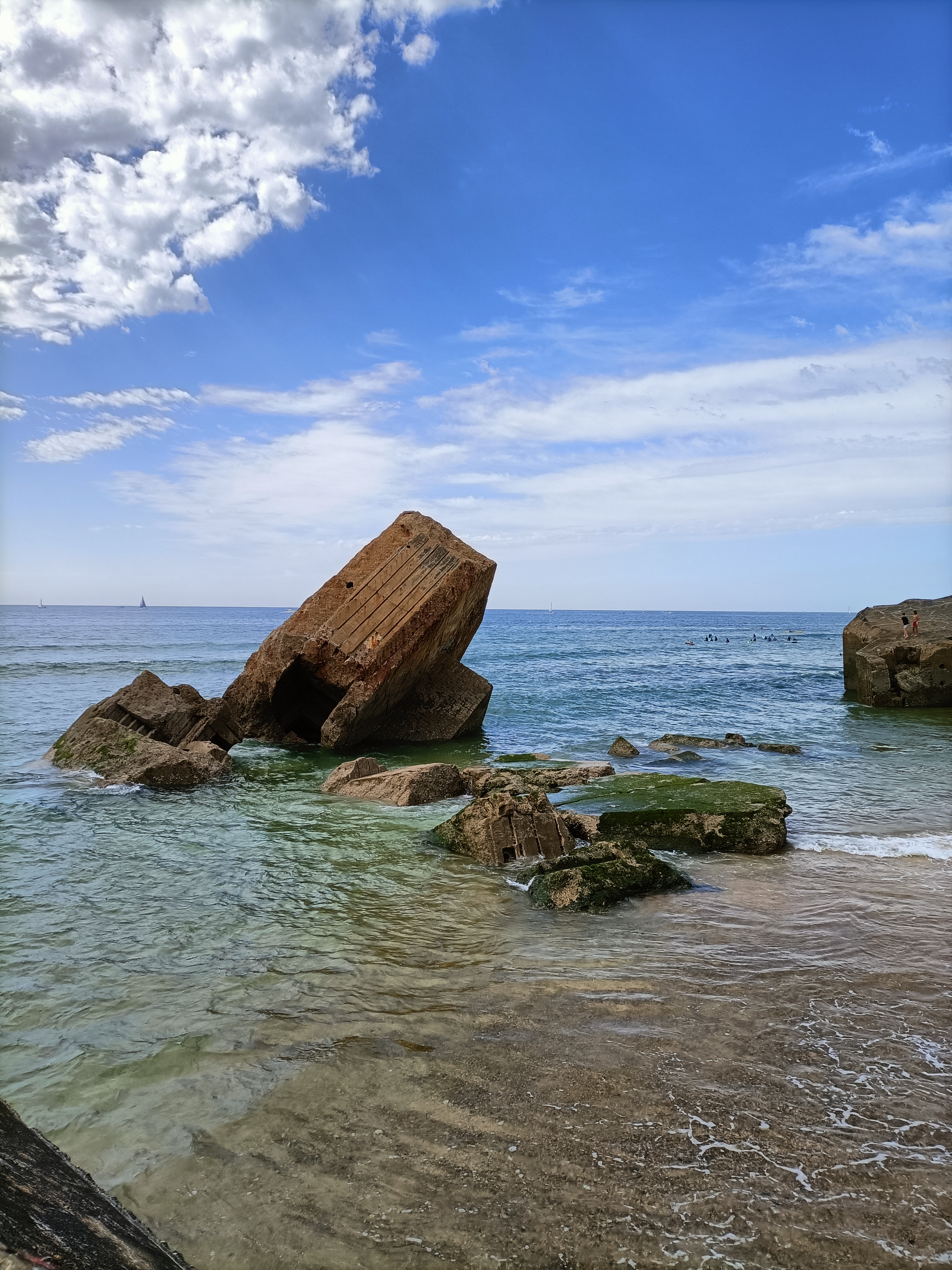 - Digestion et bronzette à la plage de la Piste, assez atypique avec la présence de blockhaus sur le sable et dans la mer.