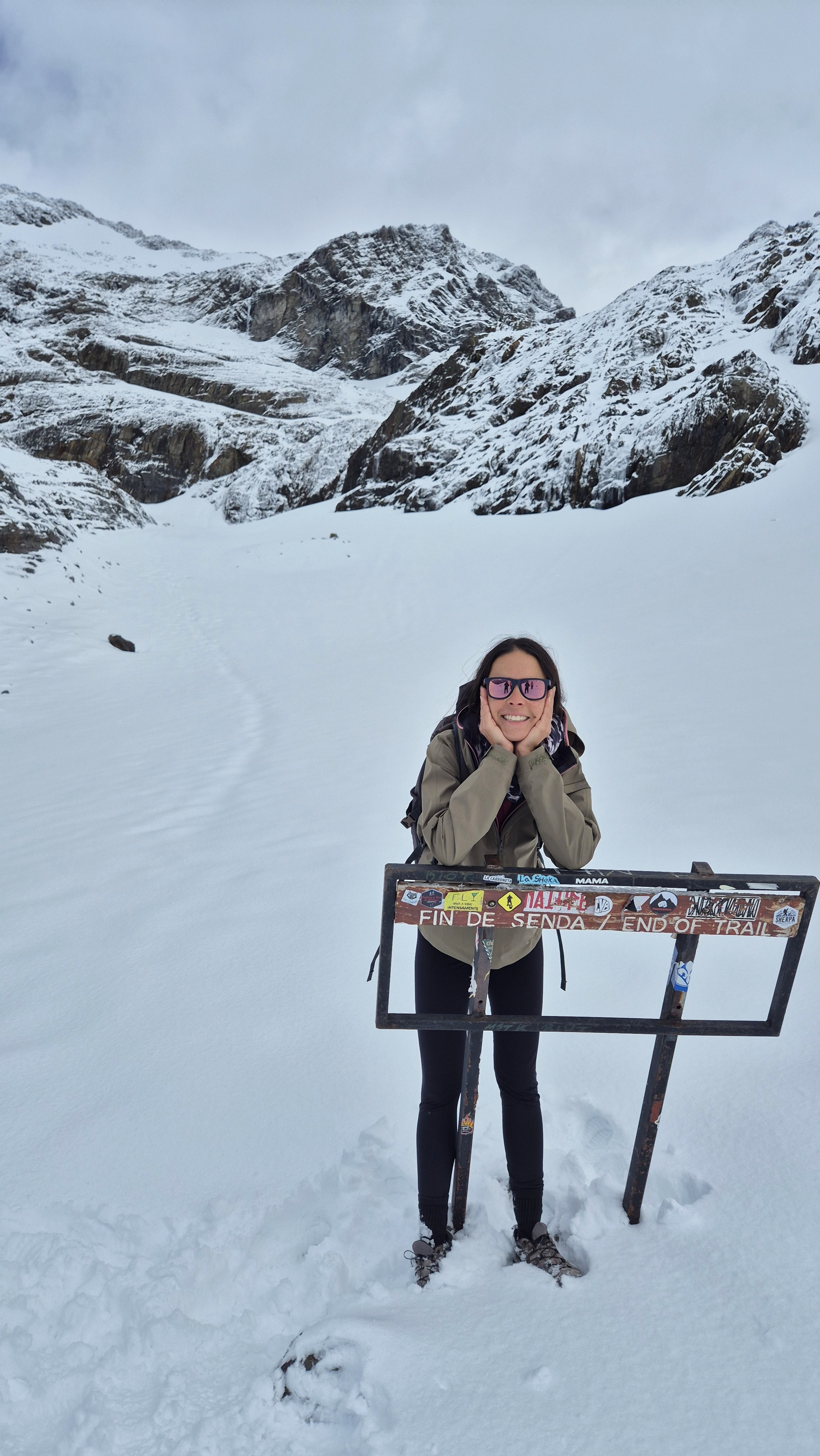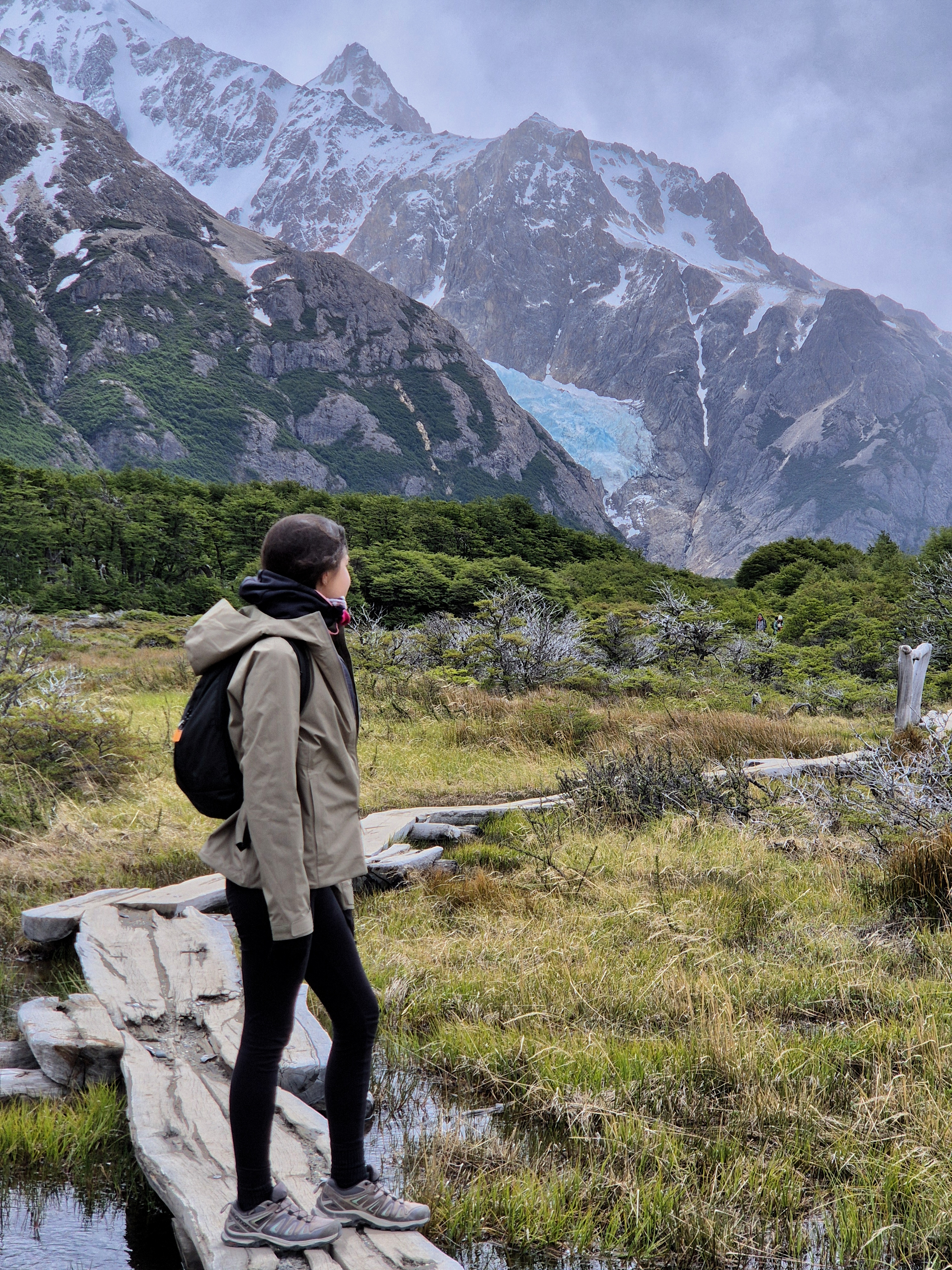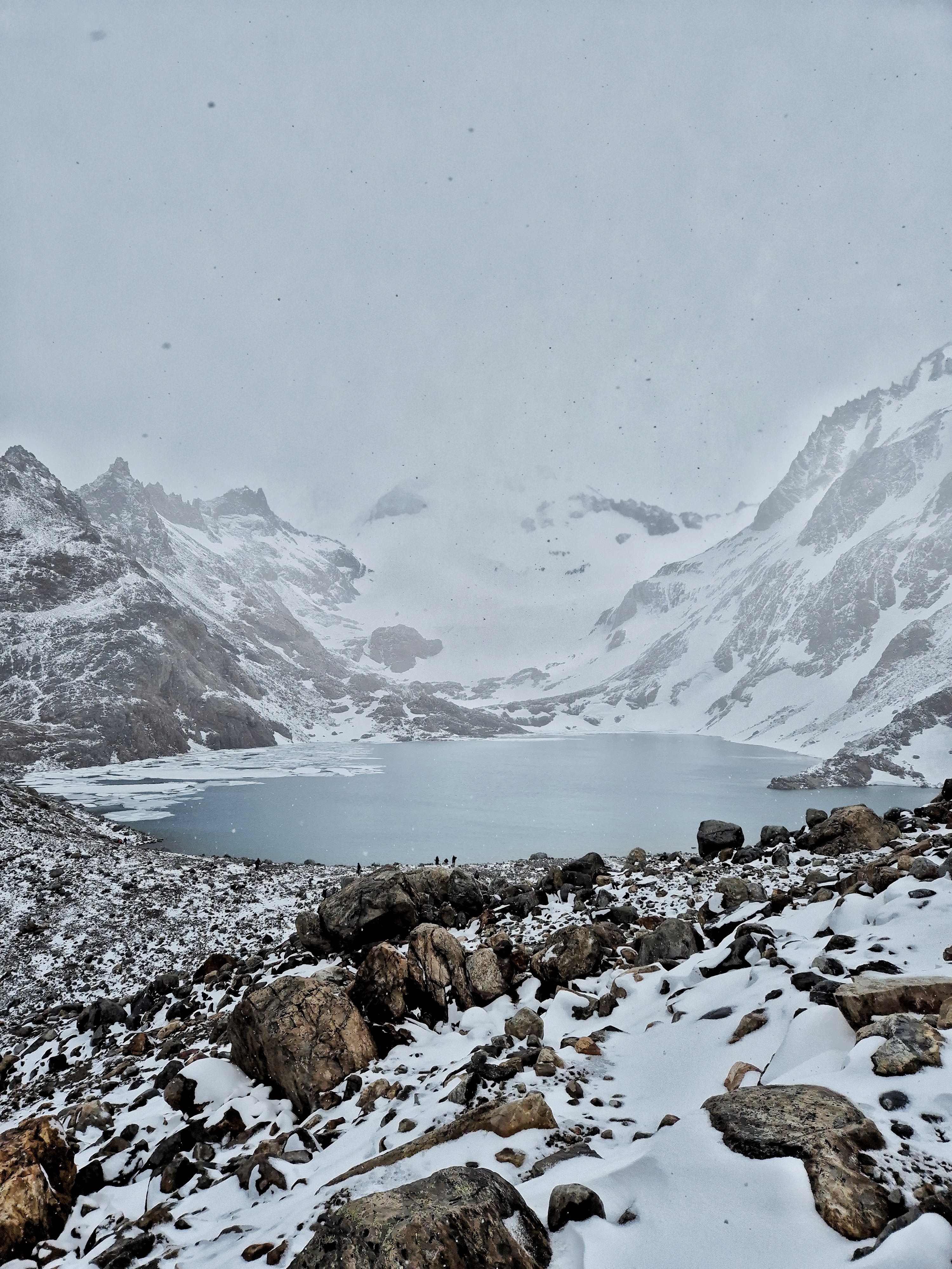 Par exemple, pour monter au Fitz Roy, nous sommes partis à 6h45 de l’hébergement pour arriver avant 7h et ne pas payer. En effet, les contrôles commencaient à 8h (dès janvier 2025 ils commencent à 7h). Quelle belle idée nous avons eu de venir ce jour là pour se faire accueillir par une tempête de neige et de grêle ! Je dois vous avouer que nous étions gelés et que la vue n’était pas dégagée. J’imagine que cela doit être magnifique sous un ciel bleu ! Pour le retour, nous voulions éviter un contrôle (il est possible qu’on nous fasse payer en cas d’absence de tickets). Ainsi, nous décidons de faire une boucle en passant par un autre chemin qu’on nous avait conseillé ! Sauf qu’on ne nous avait pas prévenu que la boucle en question représentait 30km de marche… Alors heureusement, cette boucle est vraiment très belle et si vous le sentez, je vous la recommande 🙂 Vous retrouverez ce chemin sur Mapsme, la randonnée s’appelle Senda a Laguna Torres.