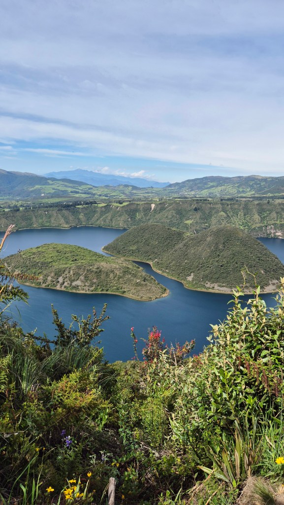 Laguna Cuicocha on a fait le tour de la laguna et c’était vraiment très beau ! Entrée gratuite, on a pris le taxi de notre hébergement ! Prenez votre déj pour faire une pause vu laguna !